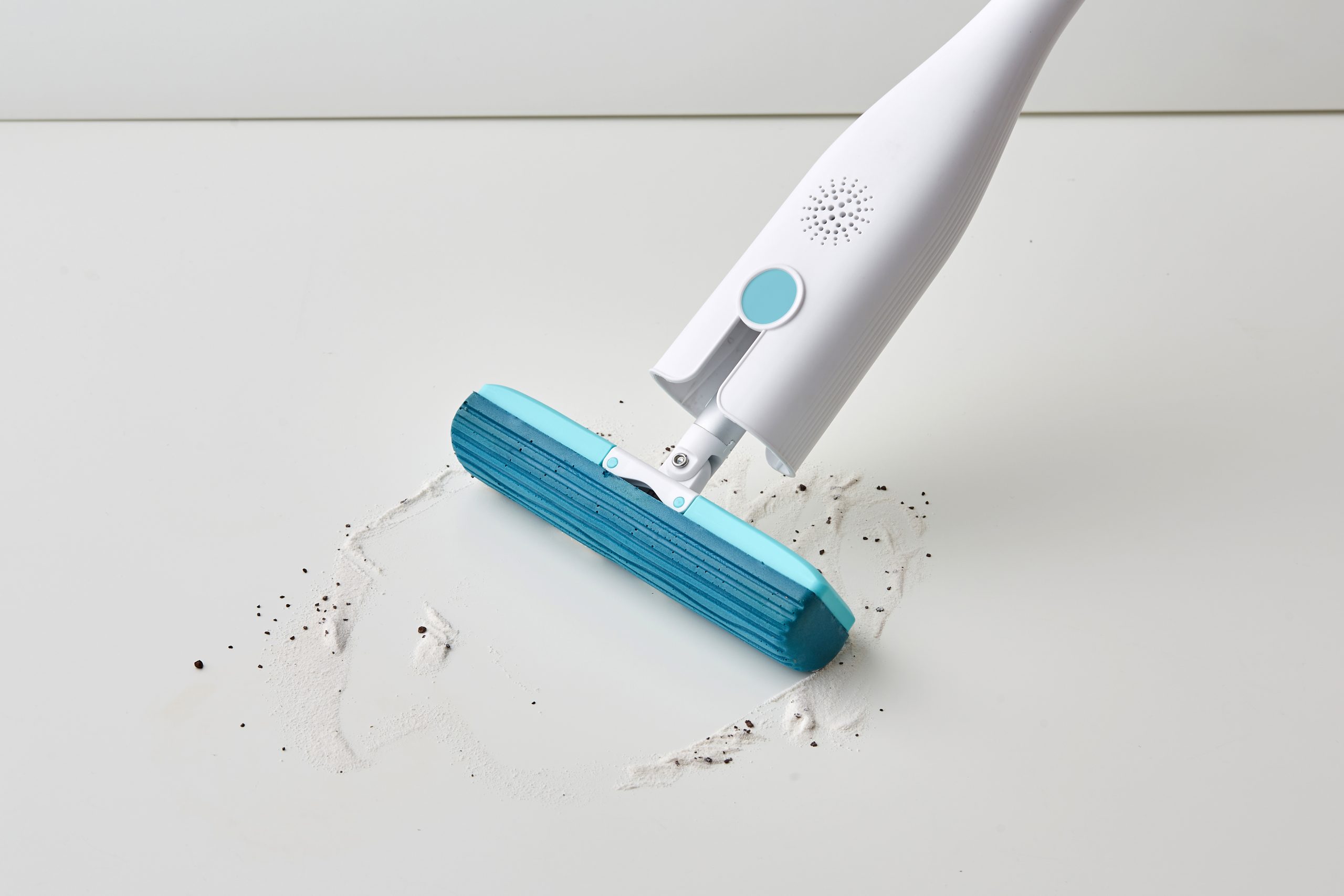 無論是清理濕滑地板或是擦拭洗手檯面、磁磚牆面,百研迷你拖把的膠棉頭都能快速吸附水分與髒污。