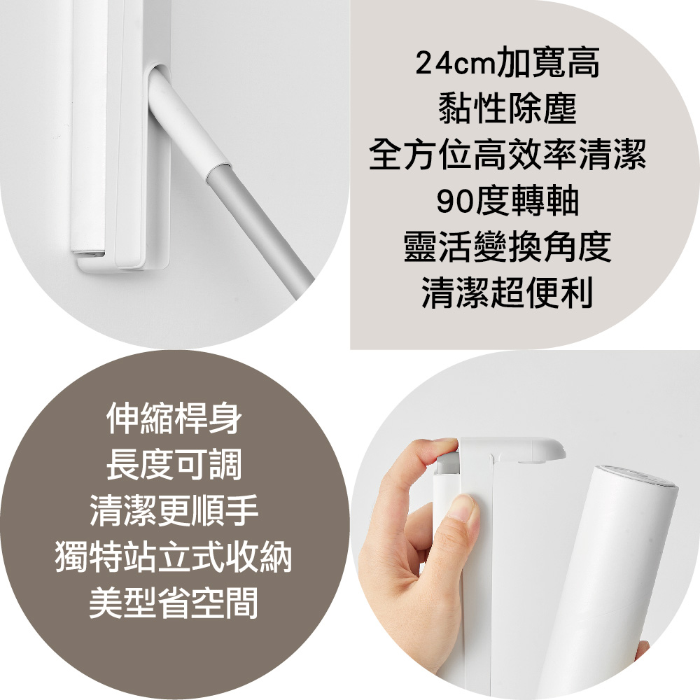 ●24cm加寬高黏性除塵,全方位高效率清潔。